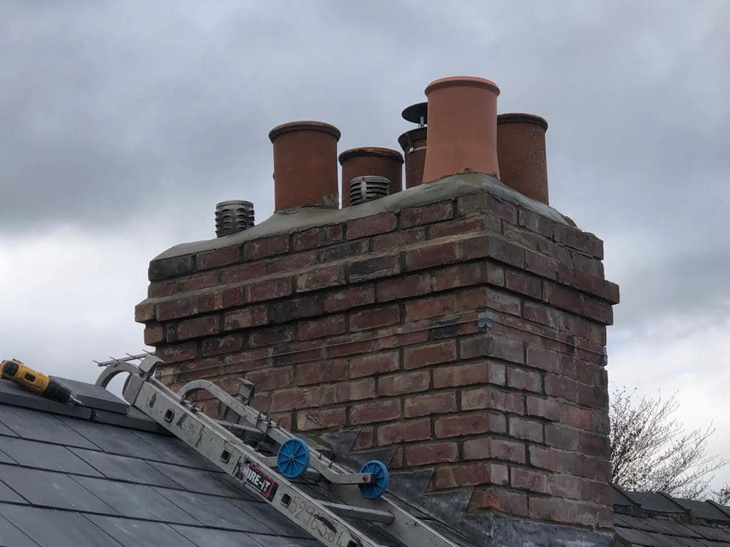 Repoint and restore chimney brickwork to prevent moisture ingress and structural damage.